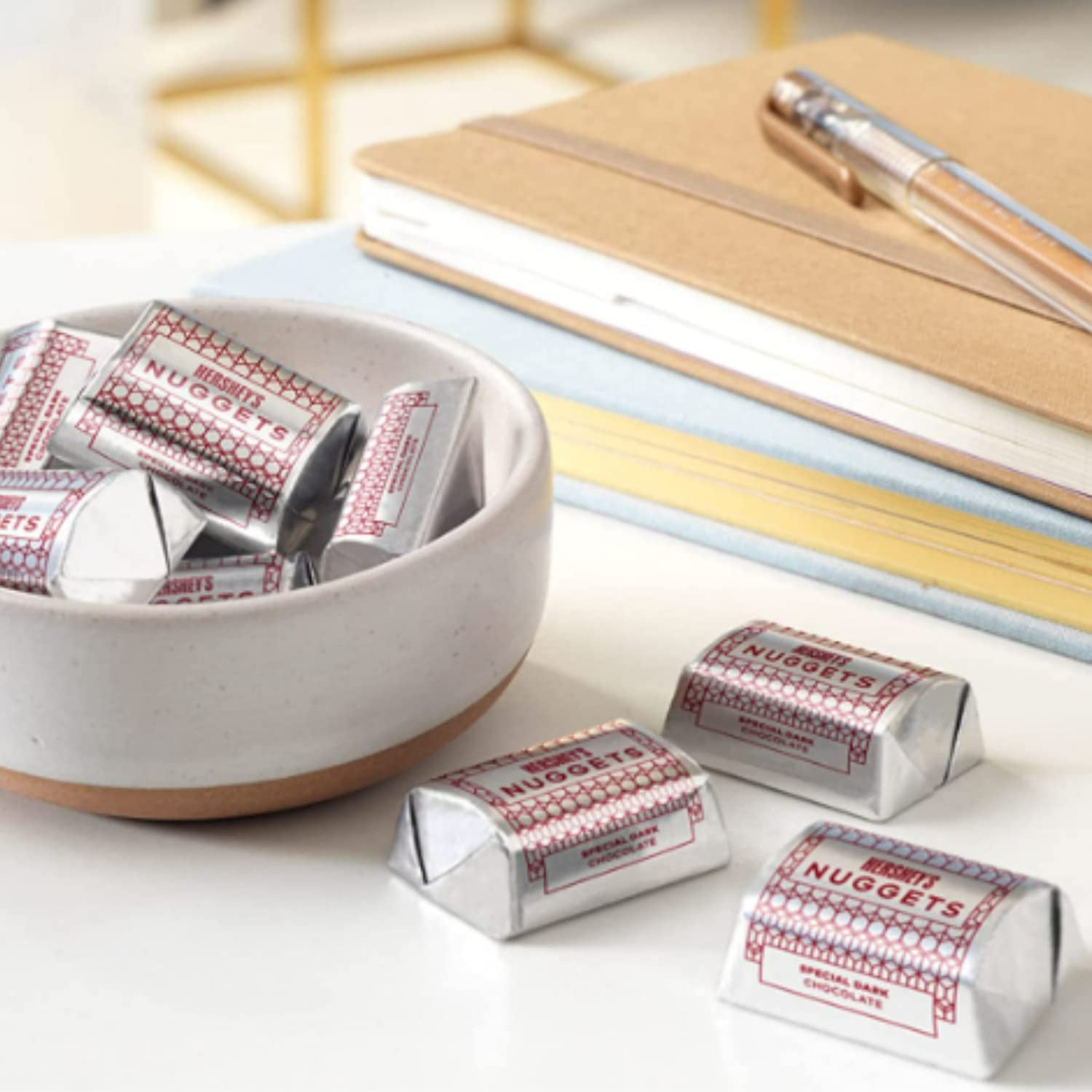• Hershey's Nuggets Dark Chocolate with Almonds is perfect for satisfying your sweet tooth without the guilt, as dark chocolate has been shown to have health benefits.