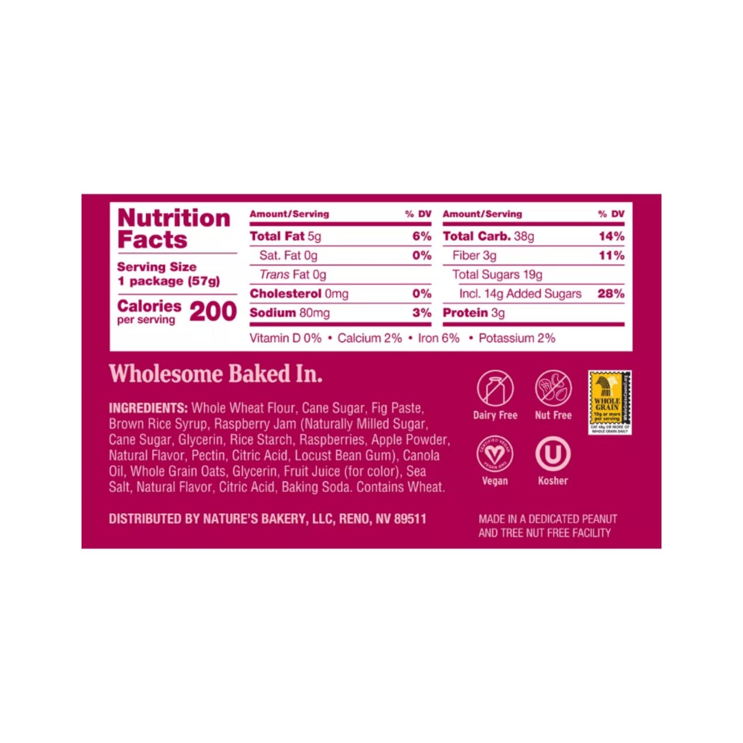 - Bundle with 1 box Nature's Bakery Raspberry Fig Bars, 6 Twin Packs, 12 Oz, 1 Box.