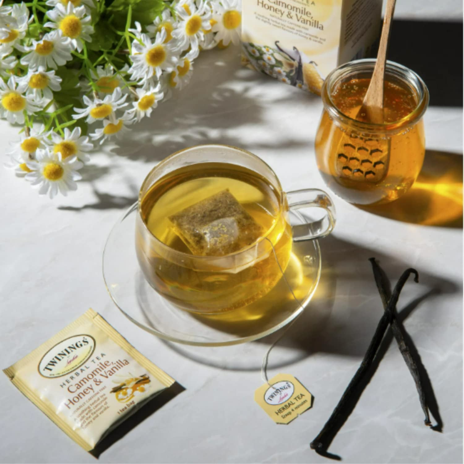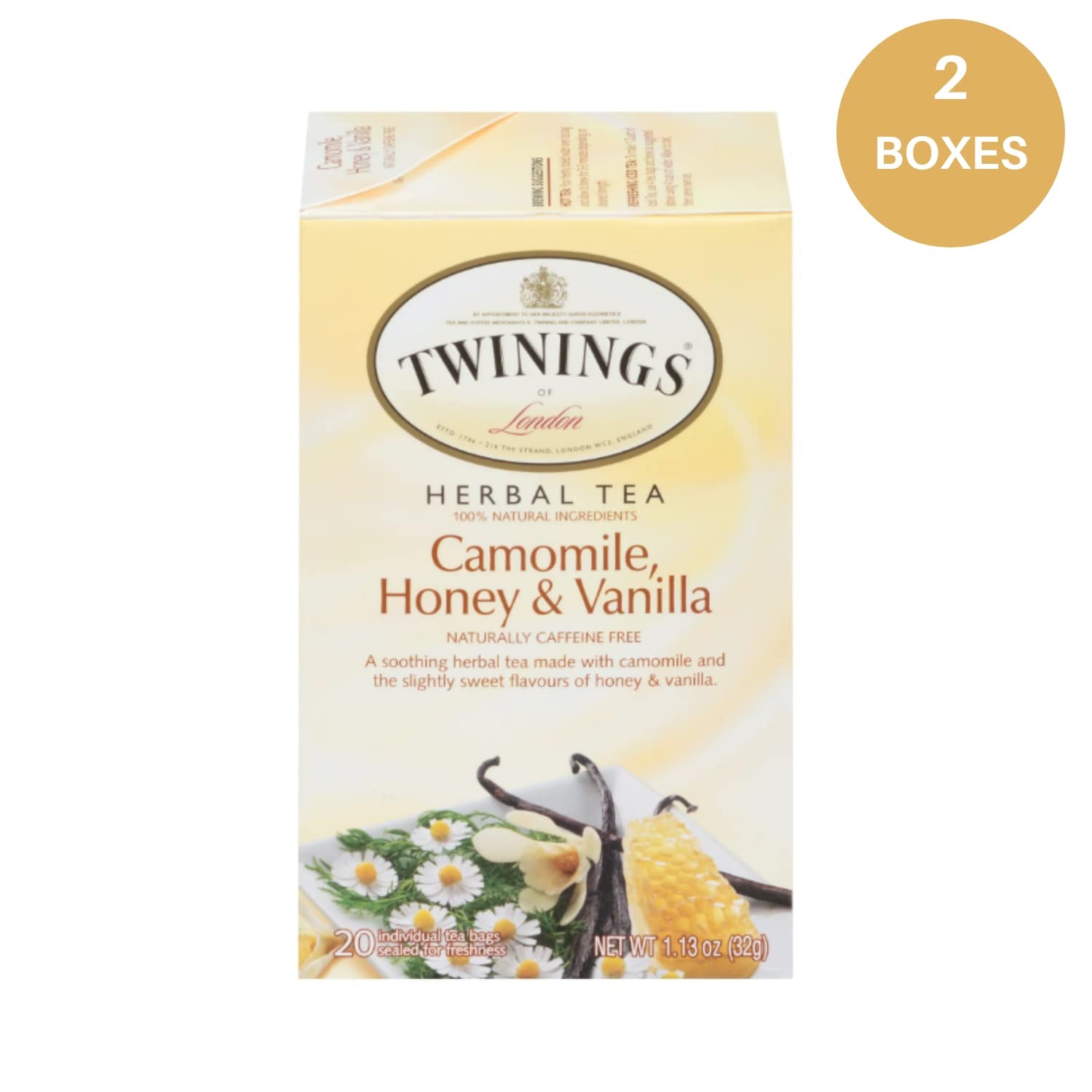 - Pack of 2 boxes of Camomile, Honey & Vanilla Herbal Tea, 20 Tea Bags Each Box.