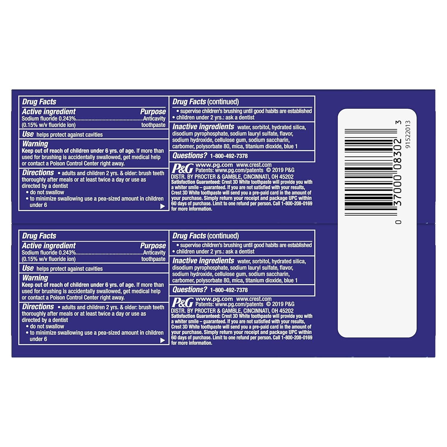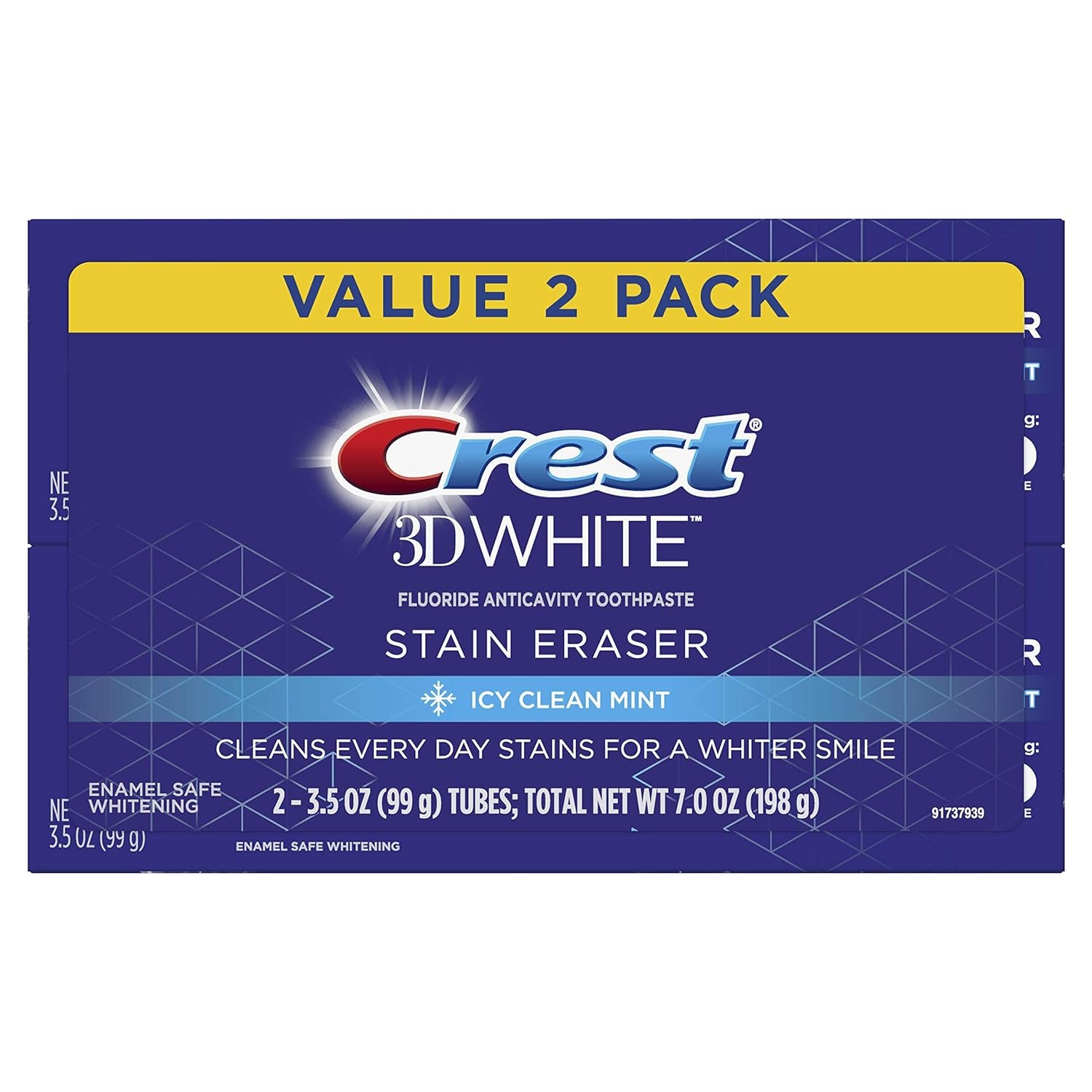 - Includes two 3.5 oz tubes of Crest 3D White Stain Eraser Icy Clean Mint Toothpaste