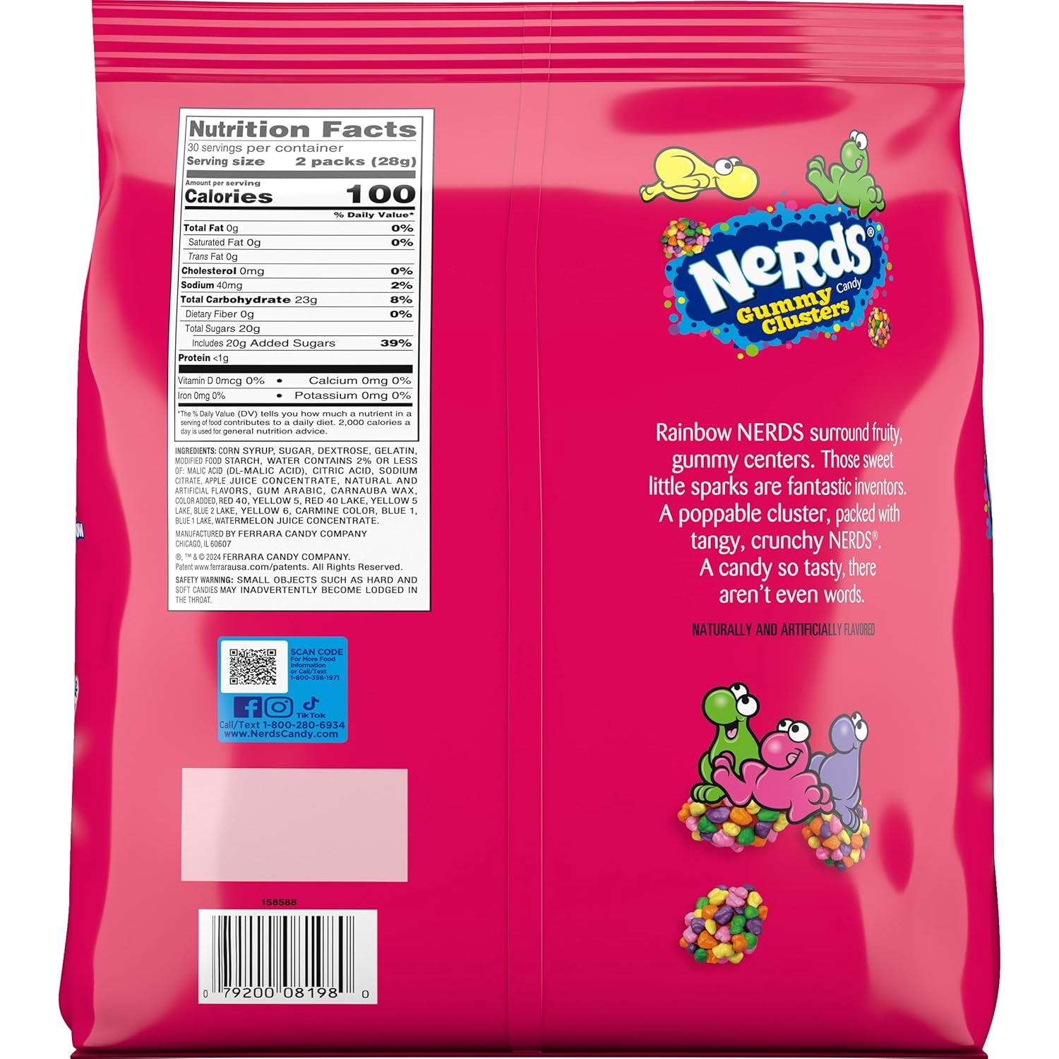 • NERDS GUMMY CLUSTERS: Classic, crunchy NERDS candies heaped on a red gummy candy center to make tasty bite-sized clusters too fun for words
