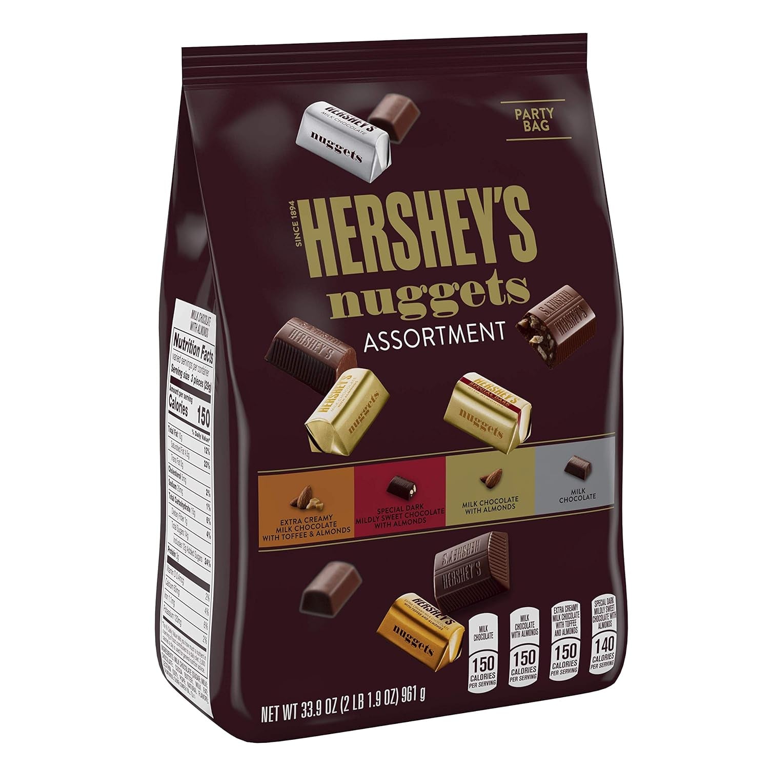 - Includes one 33.9-ounce bag of HERSHEY'S Nuggets Chocolate Candy Assortment